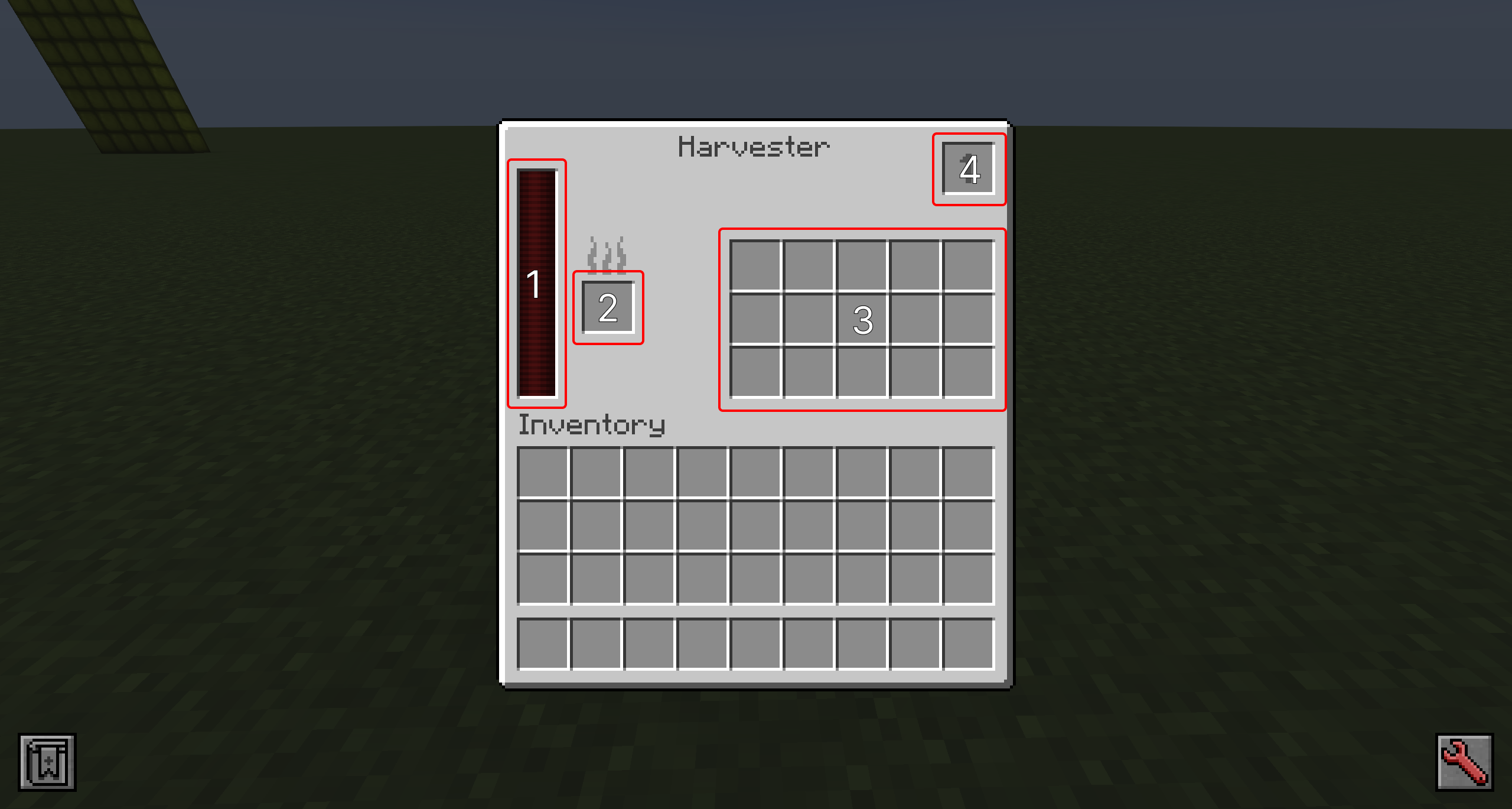 The Harvester is a machine that will auto-harvest crops and re-plant them. Items collected by the Harvester are placed into it's internal inventory.